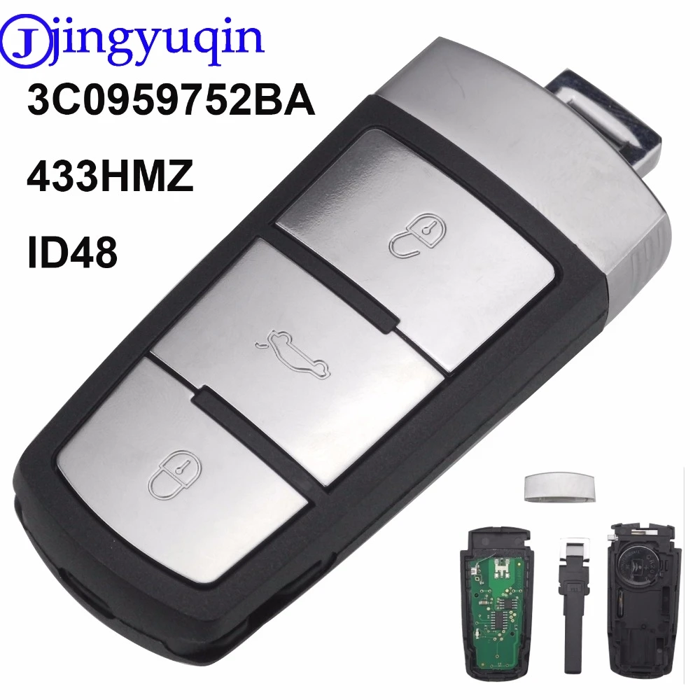 Mejor Automóviles y motocicletas de jingyuqinKey Store por Control remoto de coche inteligente sin llave, 433MHz, 3 botones, sin abrir, con Chip ID48, 3C0959752BA, para VW, Passat B6, 3C, B7, Magotan, CC
